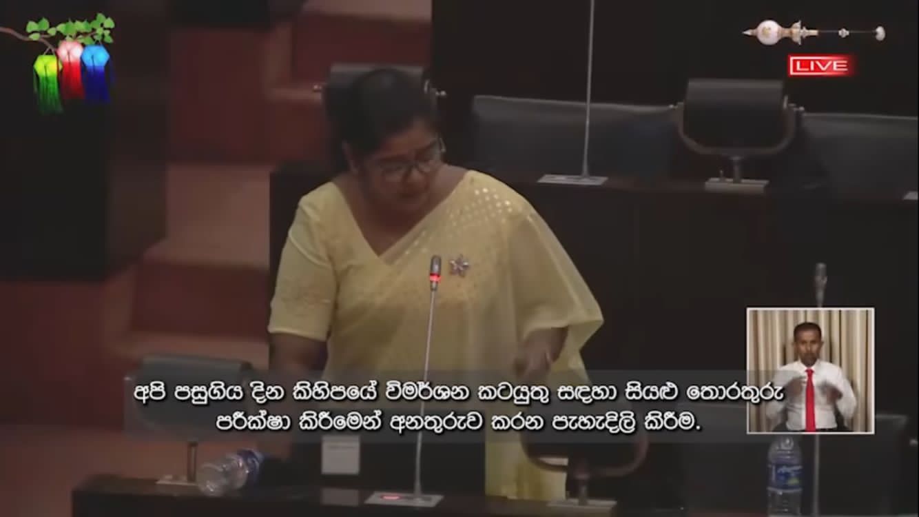 ආන්දෝලනයක් ඇති කරමින් මියගිය අම්ශිකා දැරිය ගැන ඊයේ(😎 පාරිල්මේන්තුවේදී ළමා හා කාන්තා කටයුතු ඇමතිනී සාවිත්රී පෝල්රාජ් මහත්මිය කළ කතාව කතාබහක් ඇති කර තිබේ. ඇතැම් මාධ්ය ඇය කී කරුණු වැරදි ලෙස ඉස්මතු කර ඇතැයිද විවේචන පවතී. පහත පළවන්නේ ඇය දෙමළ බසින් සිදු කළ කතාවේ සිංහල පරිවර්තනයයි. සිංහල උප සිරසි සහිත වීඩියෝව ඊට පහතින්