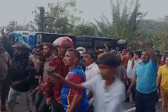 තඹුත්තේගම සිට බණ්ඩාරවෙල බලා විනෝද චාරිකාවක් යමින් සිටි පිරිසක් රැගත් බස් රථයක් මෙලෙස අනතුරට ලක් වුණා.