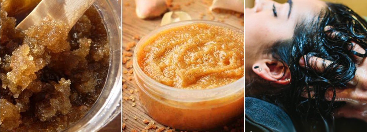 ඔබේ හිසකෙස්වල ගුණාත්මක බව වැඩි කර, හිස කෙස් ශක්තිමත් කිරීමට දුඹුරු පැහැති සීනි යොදා ඔබේ හිස්කබල පිරිසිදු කරන්න.