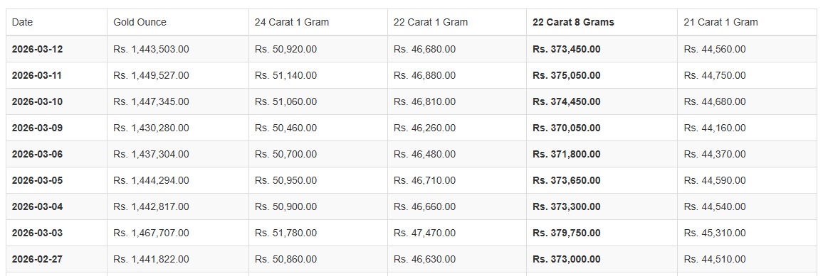 කැරට් 22 සහ 21 ග්රෑම් 1ක මිල පිළිවෙළින් රුපියල් 46,680.00ක් සහ රුපියල් 44,560.00ක් ලෙසයි සඳහන් වූයේ.