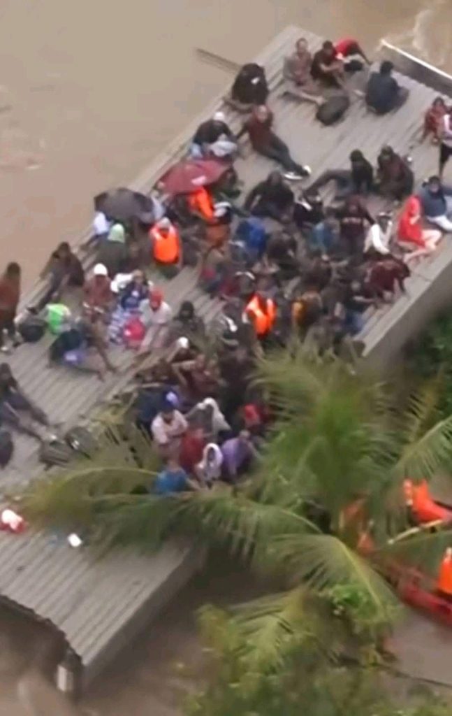 ජනාධිපතිවරයාට අනුව, ගුවන් යානයෙන් ජනනය වන තද සුළඟ නිසා බිඳෙනසුලු වහලය කඩා වැටීමට හෝ ගසාගෙන යාමට ඉඩ ඇති බැවින්, විශාල ජීවිත හානි සිදුවිය හැකි බැවින්, කණ්ඩායම ඔසවා තැබීමට හෙලිකොප්ටර් යෙදවිය නොහැකි විය. මේ හේතුවෙන් සිවිල් වැසියන් සහ නාවික නිලධාරීන් හැත්තෑ දෙනෙකු පැය දහඅටකට වැඩි කාලයක් වහලය මත රැඳී සිටි අතර, තද වැසි සහ සුළඟින් පීඩා වින්දා. නාවිකයින් තිදෙනා පෙන්වූ සන්සුන් භාවය සහ ධෛර්යය භීතිය වළක්වා රාත්රිය පුරා සියලු දෙනාම ජීවතුන් අතර තබා ගැනීමට උපකාරී වූ බව ජනාධිපතිවරයා පැවසීය.
