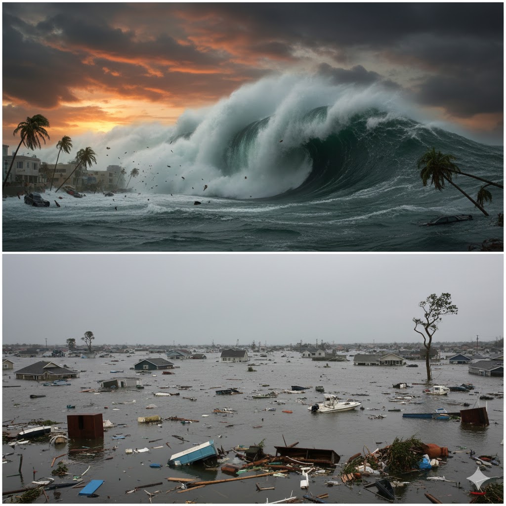 “2025 වසරේ රුසියාවේ කම්චැට්කා වෙරළට ඔබ්බෙන් සිදු වූ රික්ටර් පරිමාණ 8.8 ක දැවැන්ත භූමිකම්පාව නිසා ඇති වූ දැවැන්ත සුනාමි රළ අභ්‍යවකාශයේ සිට ග්‍රහණය කර ගැනීමට හැකි විය. වෙරළ තීරයන්හි විශාල රළ වාර්තා නොවූවත්, පැසිෆික් සාගරය සුනාමි රළ පහරට ගොදුරු වී තිබුණි.”