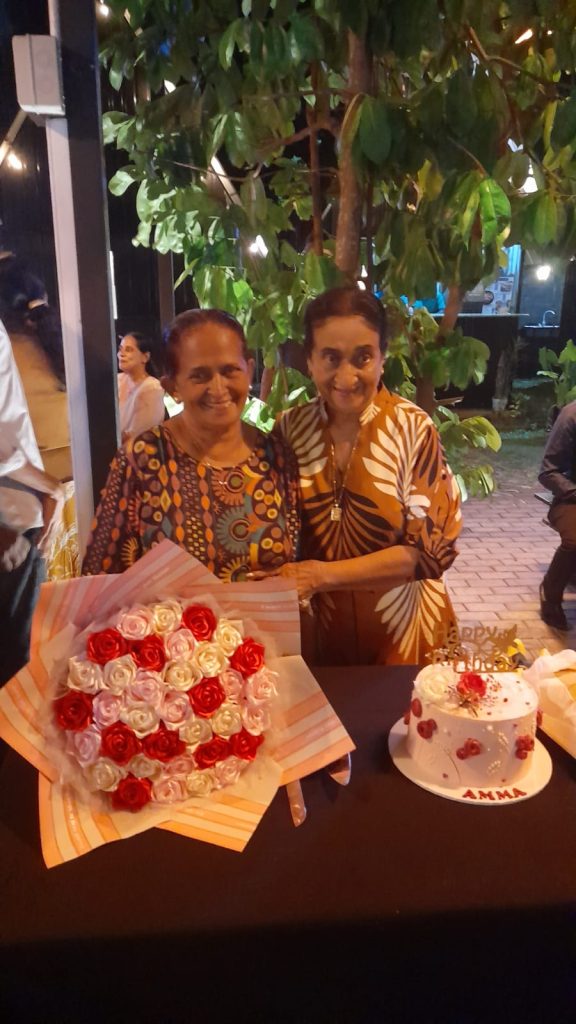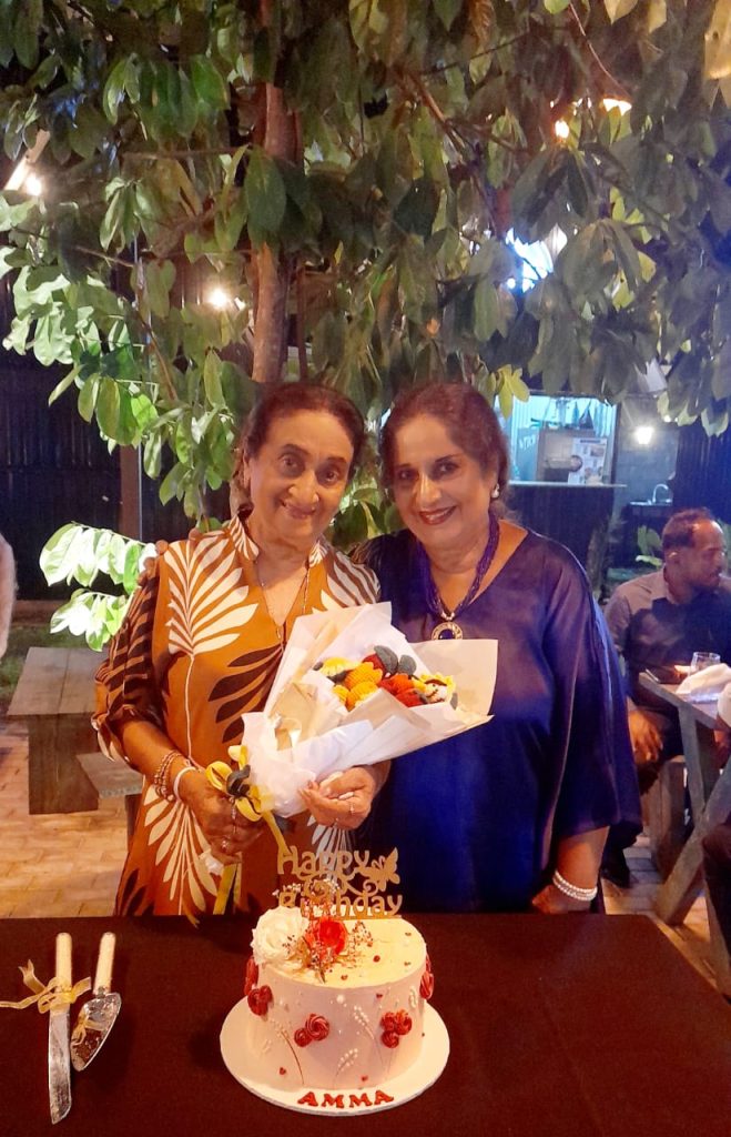 ගිහින් ඇතුළට ගියාට පස්සේ තමයි මට අදහාගන්න බැරි වුණේ. මෙන්න බොලේ උදේ ඉදන් මට සුබ පැතූ මගේ නැදෑයෝ හැමෝම එතැන ඉන්නවා. මට මේක හිතා ගන්න බැහැ. ලොකු ‘බර්ත් ඩේ’ පාටි එකක්. මගේ දුවයි, නිරංජලා නංගිගෙයි මාව පුදුම කරවන්න තමයි රහසිගත විදියට මේක සංවිධානය කරල තියෙන්නේ