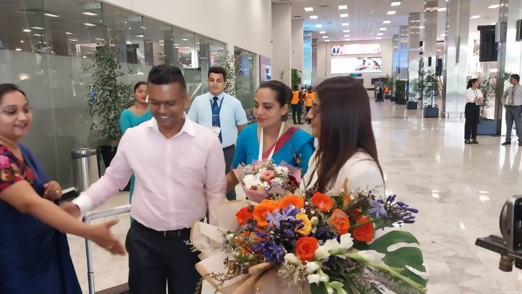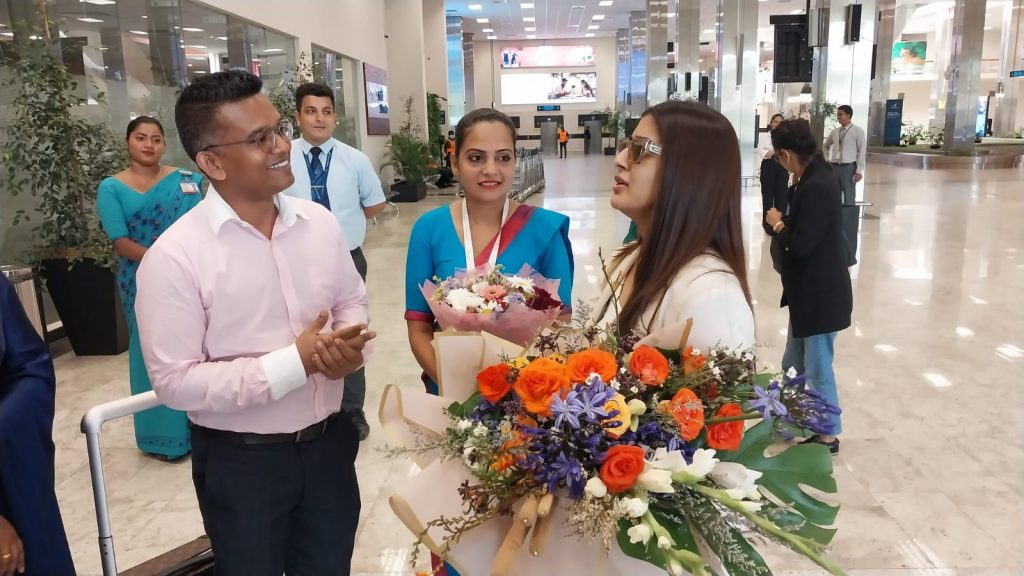 ඇය පිළිගැනීම සදහා ශ්‍රී ලංකා සංචාරක ප්‍රවර්ධන කාර්යාංශයේ නිලධාරීන් ඇතුළු පිරිසක් කටුනායක ගුවන් තොටුපොළ ” සිල්ක් රූට් ” පර්යන්තය වෙත පැමිණ සිටියා.