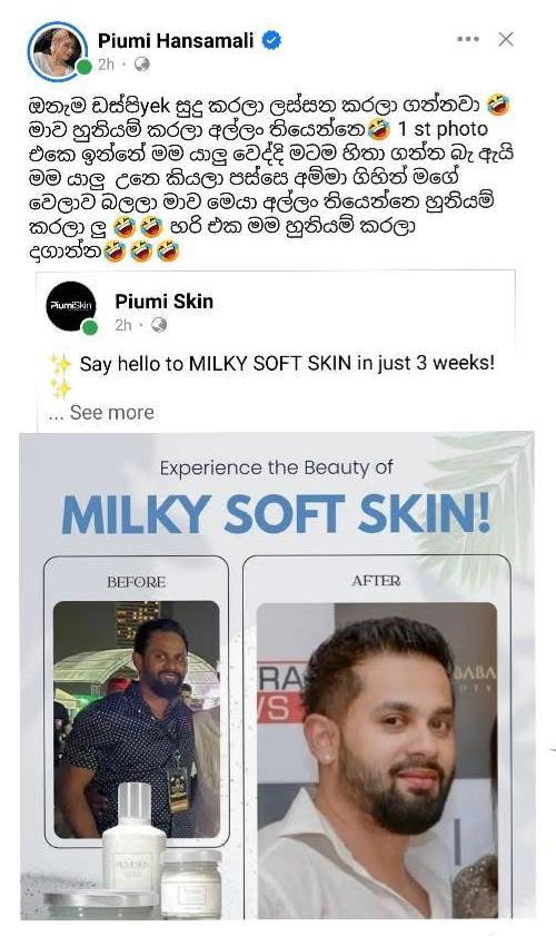 ඉතිං පසුගියදා ඇය ඇගේ සමාජ මාධ්යයේ ඇගේ හිටපු පෙම්වතාගේ රුව ඇගේ ක්රීම් අලෙවි ප්රවර්ධනය සදහා මේ විදිහට යොදාගෙන තිබුනා