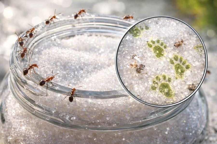 3. ෆෙරමෝන රසායනික (Pheromones) 🧪 කූඹි පේළියට යන්නේ කොහොමද? ඉස්සරහ යන කූඹියා පස්සෙන් එන කූඹියාට පාර කියන්න රසායනික ද්රව්යයක් (Pheromones) නිකුත් කරනවා. සීනි බෝතලේ පුරාම කූඹි හිටියා නම්, ඒ මුළු බෝතලේම මේ රසායනික ද්රව්ය තැවරිලා තියෙනවා. සමහර අයට මේක ඇලජි වෙන්න පුළුවන්.