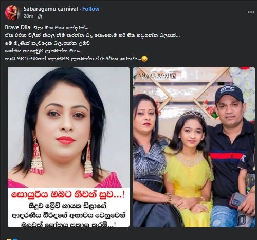 සීදූව BRAVE සංගීත කණ්ඩායමේ නායක Brave Dila ඩිලාගේ ආදරණීය බිරිඳ අද ජීවන ගමනට සමුදී තිබෙනවා..