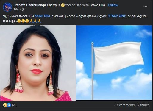 රාගම රෝහලේදී ඇය සදහටම දෑස් පියාගෙන ඇති අතර, ඇයට නිවන්සුව පතා සමාජමාධ්යයේද මේ වන විට සටහන් පළවෙනවා..
