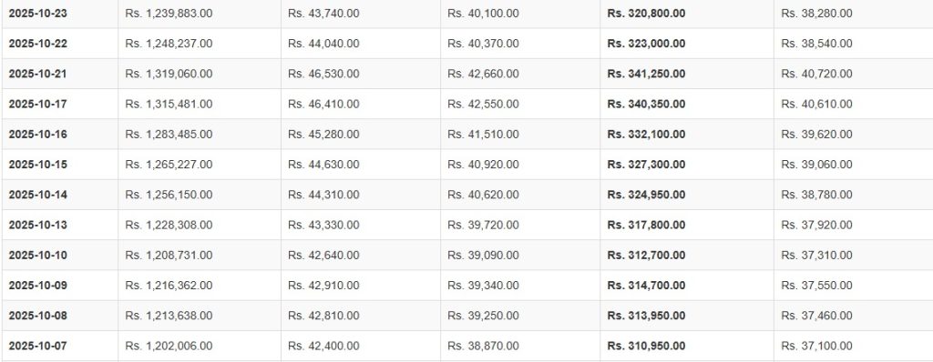 කැරට් 22 සහ 21 ග්රෑම් 1ක මිල පිළිවෙළින් රුපියල් 40,100.00ක් සහ රුපියල් 38,280.00ක් ලෙසයි සඳහන් වූයේ.