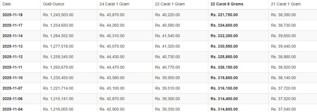 කැරට් 22 සහ 21 ග්රෑම් 1ක මිල පිළිවෙළින් රුපියල් 40,220.00ක් සහ රුපියල් 38,390.00ක් ලෙසයි සඳහන් වූයේ.