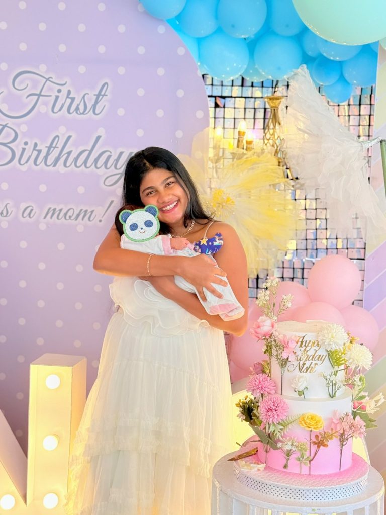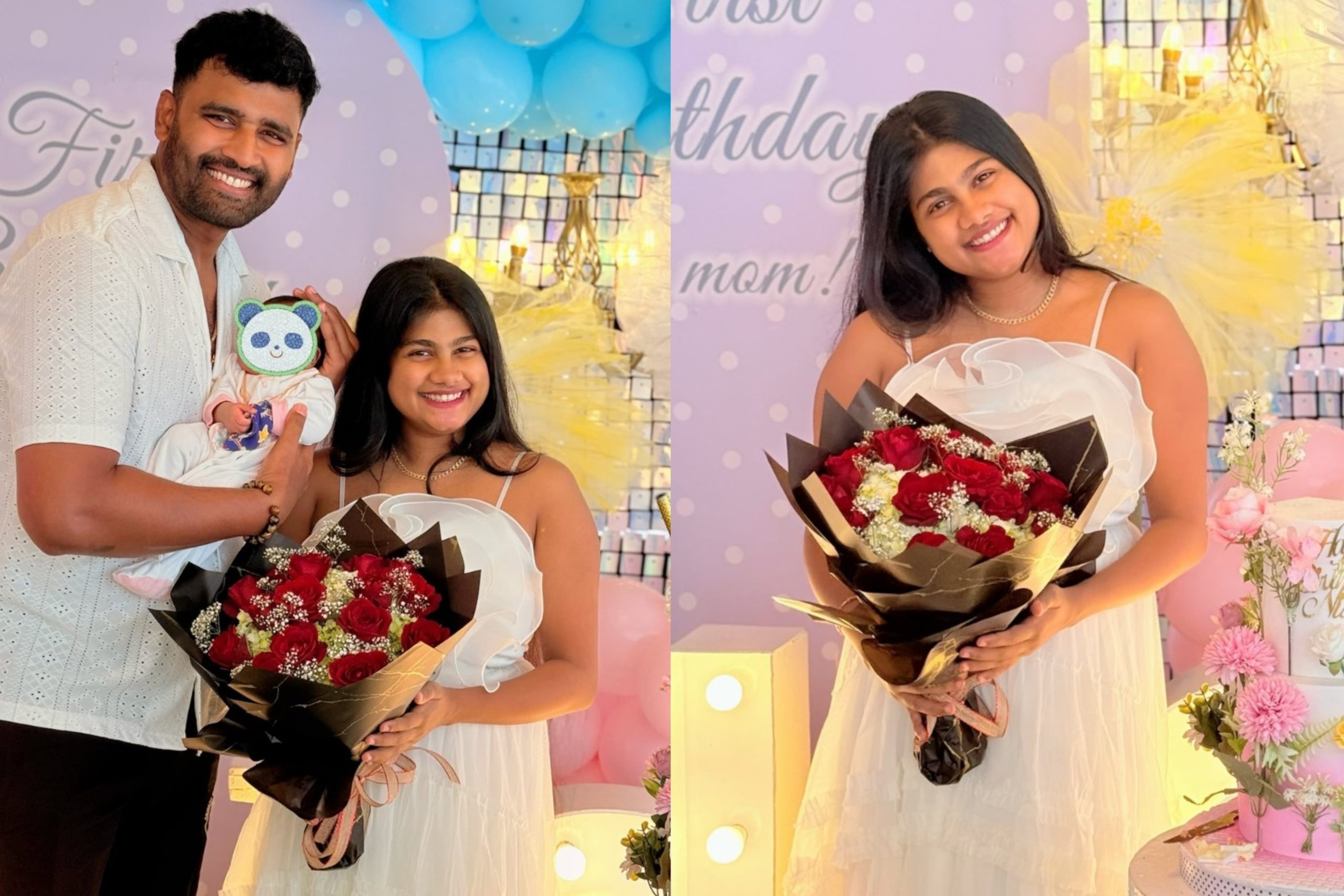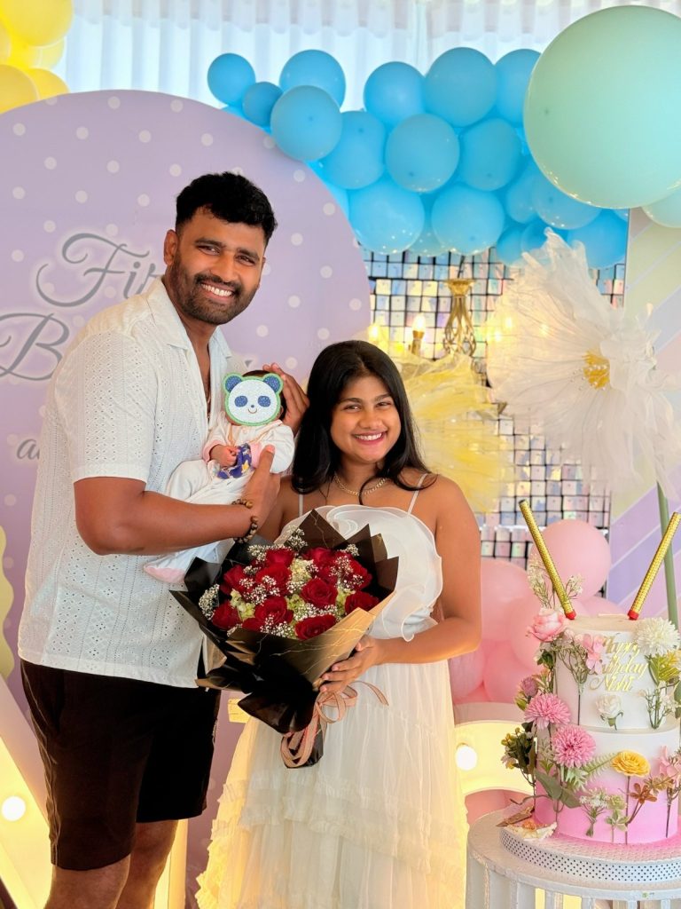 ඉතින් ඒ දෙන්නා එයාලගේ ලෝකෙට අලුතින් එක්වුණු පුංචි මැණිකත් එක්ක අද උපන් දිනය සමරුවේ මේ විදියට….
