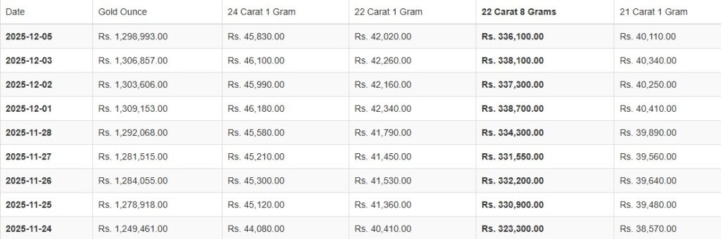 කැරට් 22 සහ 21 ග්රෑම් 1ක මිල පිළිවෙළින් රුපියල් 42,020.00ක් සහ රුපියල් 40,110.00ක් ලෙසයි සඳහන් වූයේ.