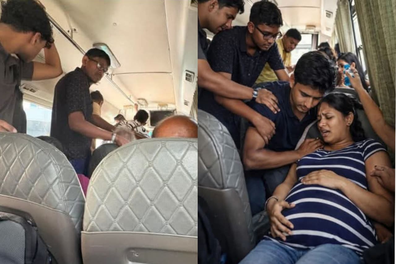 වතුර බීවත් එයාට තව තව වේදනාව ආවා මිසක් සහනයක් දැනුන්නෑ. ඒ එක්කම වෙ ගැණු කෙනා කිව්වා ” අනේ මාව Durdans 𝖧𝗈𝗌𝗉𝗂𝗍𝖺𝗅 එකට ගෙනියන්න ” කියලා. ඒ වෙලාවත් එක්ක ඉස්සරහා සීට් එකේ එකේ හිටපු මහත්මීන් දෙන්නෙක්ගේ අවධානේ ඒ කපල් එකට ලැබුනා. අර මහත්මීන් දෙන්නගෙන් එක්කෙනෙක් එයාගේ සීට් එකෙන් නැගිටලා ඇවිත් අර ගැහැණු කෙනාගේ ගේ අත තදීන් අල්ල ගත්තා. අනික් කෙනා කිව්වා ඔයා “බය වෙන්නෙපා කලබල නොවී ඉන්න ” කියලා. ඒ එක්කම ඒ ගැණු කෙනාගේ ඇඳන් ඉඳපු ඇදුම පවා සැහැල්ලු කරා.