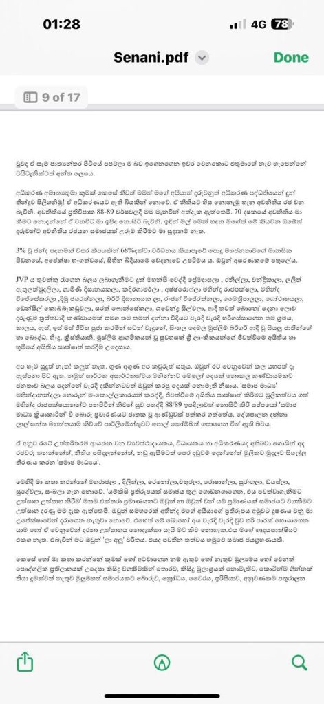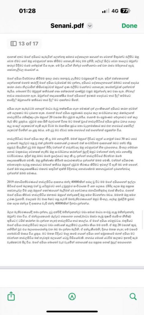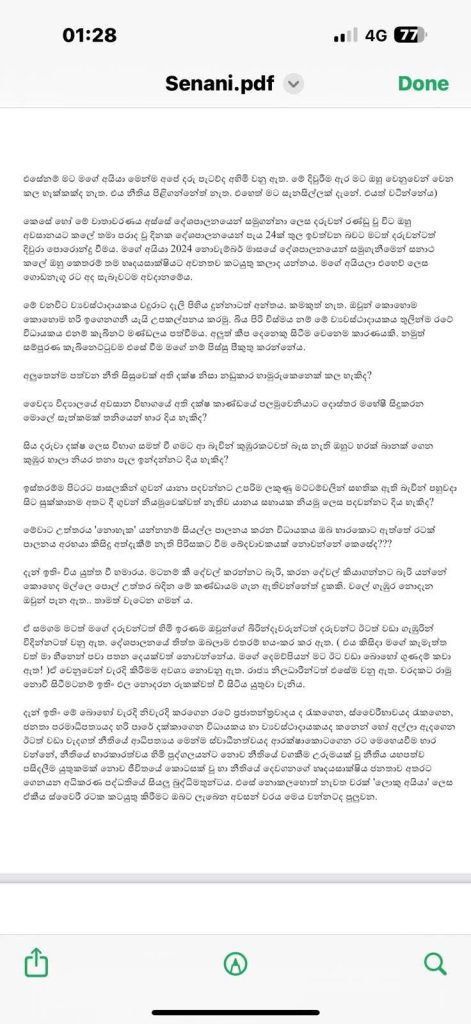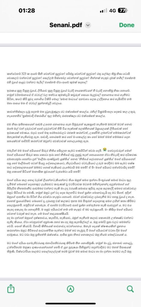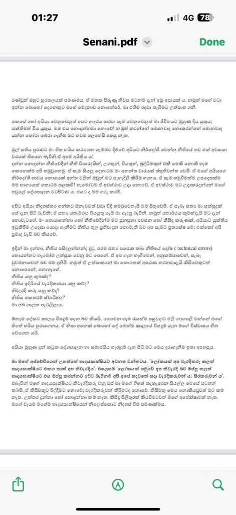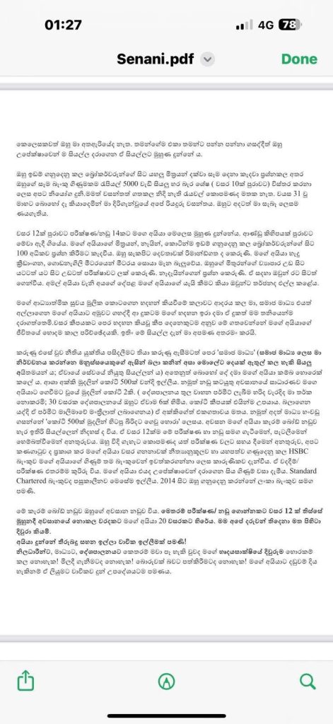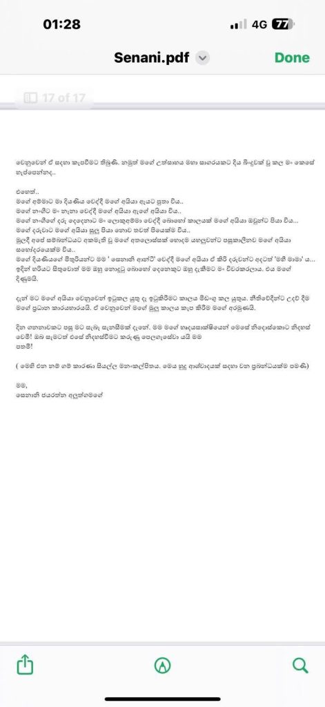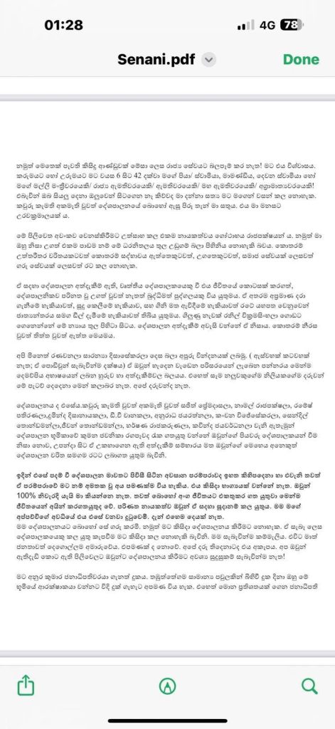 ඇය තැබූ සම්පූර්ණ සටහන පහතින්.