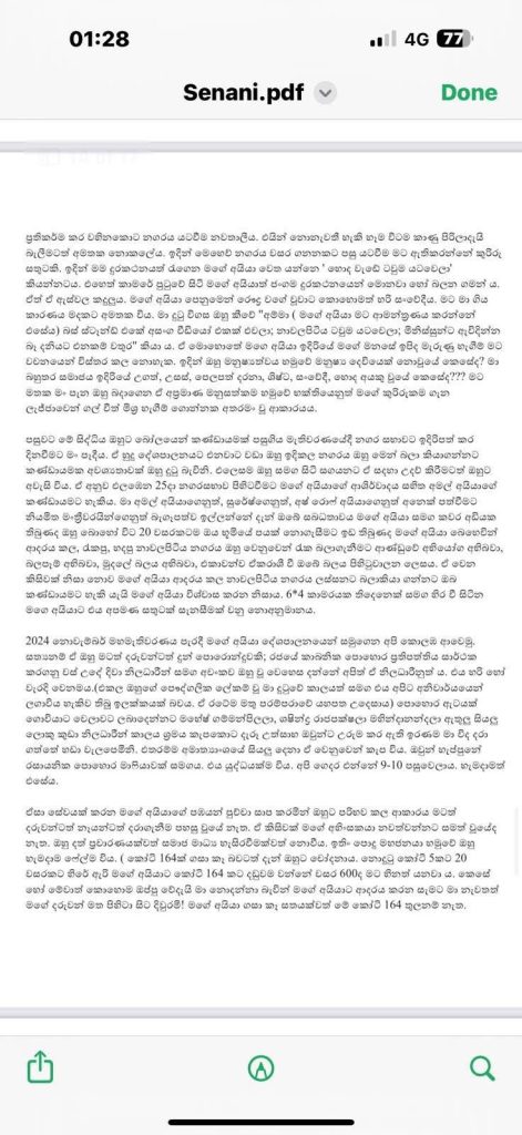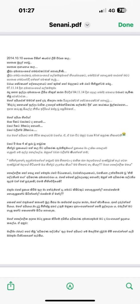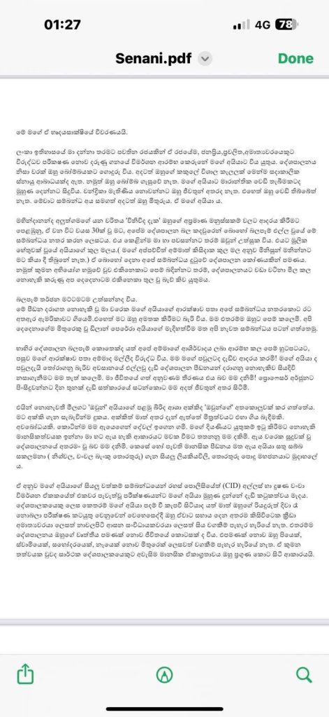 හිටපු ක්රීඩා අමාත්ය මහින්දානන්ගේ බිරිඳවන සේනානි ජයරත්න 20 වසරක සිරදඩුවමක් නියම වී සිටින තම සැමියා වෙනුවෙන් සටහනක් තබා තිබෙනවා…