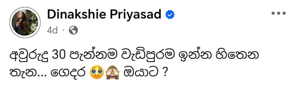 ඒ විතරක් නෙවෙයි දිනක්ෂිගේ එදිනෙදා තොරතුරු දැනගන්නත් බොහෝ දෙනෙක් ආසාවෙන් කැමැත්තෙන් ඉන්නවා.
