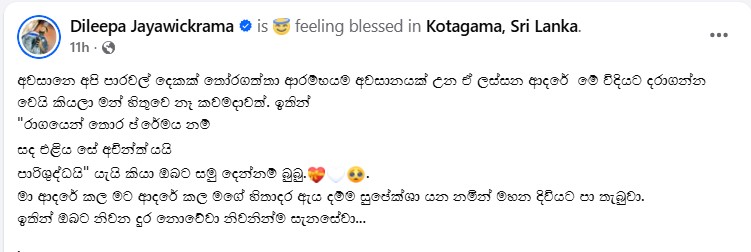 ඒ පිළිබදව සටහනක් ඇගේ පෙම්වතා විසින් මුහුණු පොතට එක්කර තිබුණා.