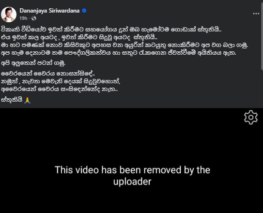 “විකෘති වීඩියෝව ඉවත් කිරීමට සහයෝගය දුන් ඔබ හැමෝටම ගොඩාක් ස්තූතියි..