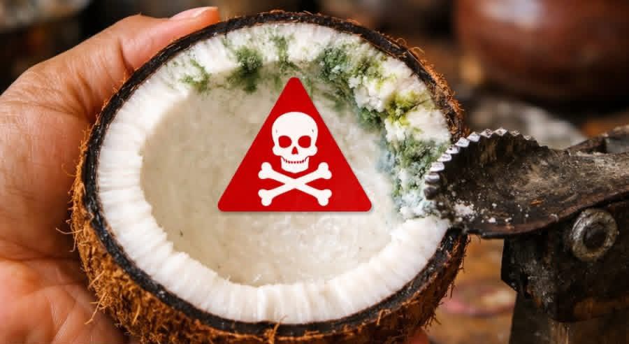 පොල් වල, විශේෂයෙන් තෙතමනය එක්ක හැදෙන සමහර දිලීර වර්ග (Fungi) මගින් ‘ඇෆ්ලටොක්සින්’ (Aflatoxin) කියන ඉතාම භයානක විෂ රසායනිකය නිපදවනවා.