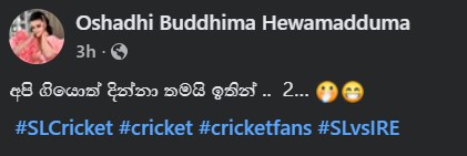 ලංකාවේ ක්රිකට් උණ හැමෝටම තදින්ම තියෙන වෙලාවක, ජනප්රිය නිළි ඕෂධී හේවාමද්දුමගේ සටහනක් නිසා දැන් මුළු අන්තර්ජාලයම ඇය ගැන කතා වෙන්න පටන් අරන්.