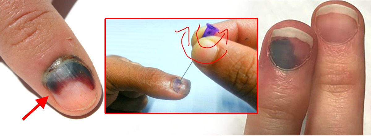 නියපොත්ත තියෙන තැනට උඩින් පහරක් හිරි තදවීමක් හරි උනාහම වෙන්නෙ නියපොත්තට යටින් තියෙන ලේ ගමන් කරන කුඩා කේශ නාලිකා damege වෙනවා එතකොට එහි ඇතුලතින් ගලන ලේ පිටත සෛල අතරට පිරෙනව මෙහෙම අර කේශ නාලිකා damege වෙච්ච තැනට clotting factors ඇවිල්ල එතන වසා ගන්නා කාලය වෙනතුරුම සෛල අතරට ලේ පිරෙනව එතකොට එතන ඉදිමෙනව වගේම අපිට පිටතටත් පේනව ක්රමයෙන් නියපොත්ත කලු පැහැයක් හරි නිල් පැහැයක් ගන්නව හරි මෙහෙම ඉදිමුනහම වෙන්නෙ ඒ හරියෙන් යන ස්නායු තන්තු තෙරපීමකට ලක් වෙනවා අන්න එතකොට තමා අපිට තද වේදනාව හට ගන්නෙ ඉතින් වේදනාව පහ වෙන්න නම් අපි කරන්න ඕන මොකක්ද මේ ඉදිමිම වහම පහ කල යුතු වෙනවා අපිට වෙන තැනකනම් එතන තැලෙනකොටම තුවාල වෙලා හරි මේ ලේ ටික ගිහිල්ල ටික වේලාවකින් වේදනාව පහ වෙනව නමුත් මෙතනදී මේක වෙන්නෙ නැ මොකද තද ඝන නිය පොත්ත නිසා ..මේ වෙලාවෙම අයිස් ටිකක් අඩුම තරමෙ විනාඩි දහයක්වත් තියාගෙන ඉන්න පුළුවන් නම් මේ වේදනාවයි ලේ පිරෙන එකයි අඩු කර ගන්න පුළුවන් නමුත් ඒ වදින වේලාවට අපිට එක පාරටම කැ ගැහෙන්නෙ අම්මේ කියල ඉතින් අම්ම අවිත් අයිස් හොයල තියෙනකොට ඉතින් අතනට ලේ පිරිල ඉවරයි.