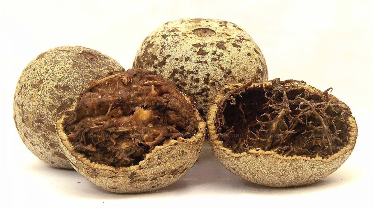 මල් රේණු තද රතු පාටයි.. ගෙඩි ගෝලාකාරයි.. තද කටුවකින් ආවරණය වෙලා තියෙනවා.. මේ කටුව සුදු පාටට හුරු අළු පාටයි.. ඉදුණාම කළු පාටට හැරෙනවා… ගෙඩියේ මදය දුඹුරු පාටයි. මදයේ බීජ රාශියක් තියෙනවා..