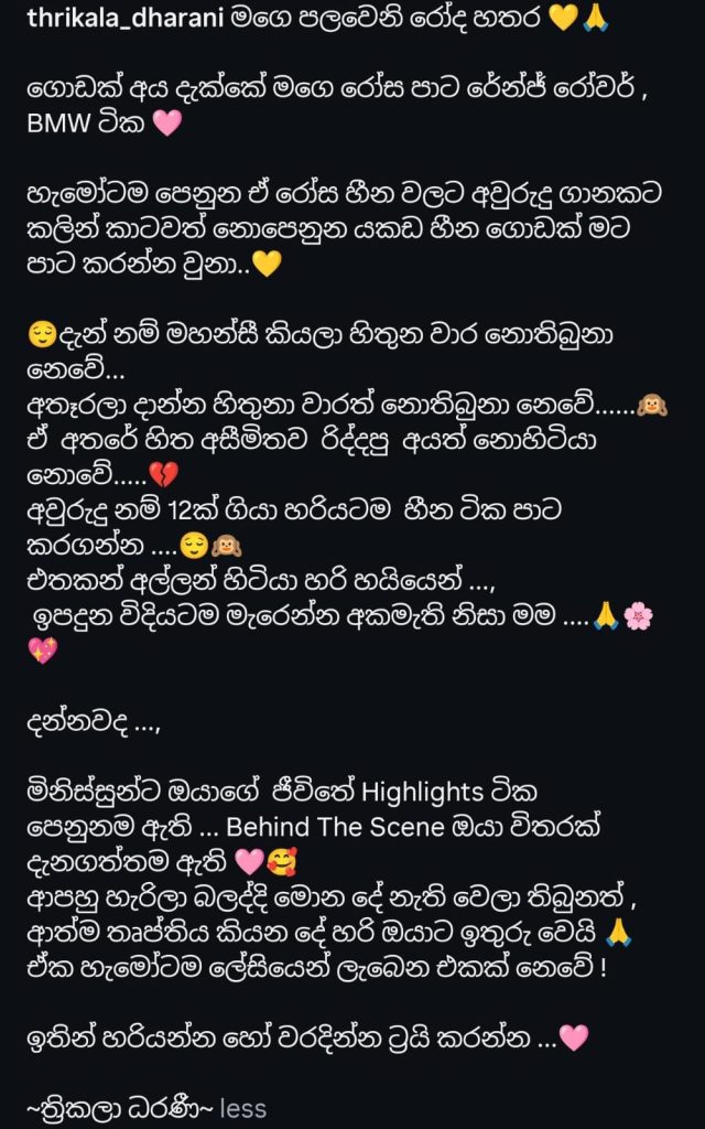 ත්රිකලා ධරණි, කාගේත් ආදරය දිනාගත්ත ඇය ජීවිතයේ හීන සැබෑවක් කරගන්න ගොඩක් මහන්සි වුණු කෙනෙක්නේ..
