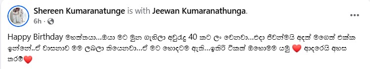 ඉතින් ඇය අද ජීවන් කුමාරතුංගගේ උපන් දිනය දා ඇය මේ වගේ සටහනක් මුහුණු පොතට එක්කර තිබුණා….