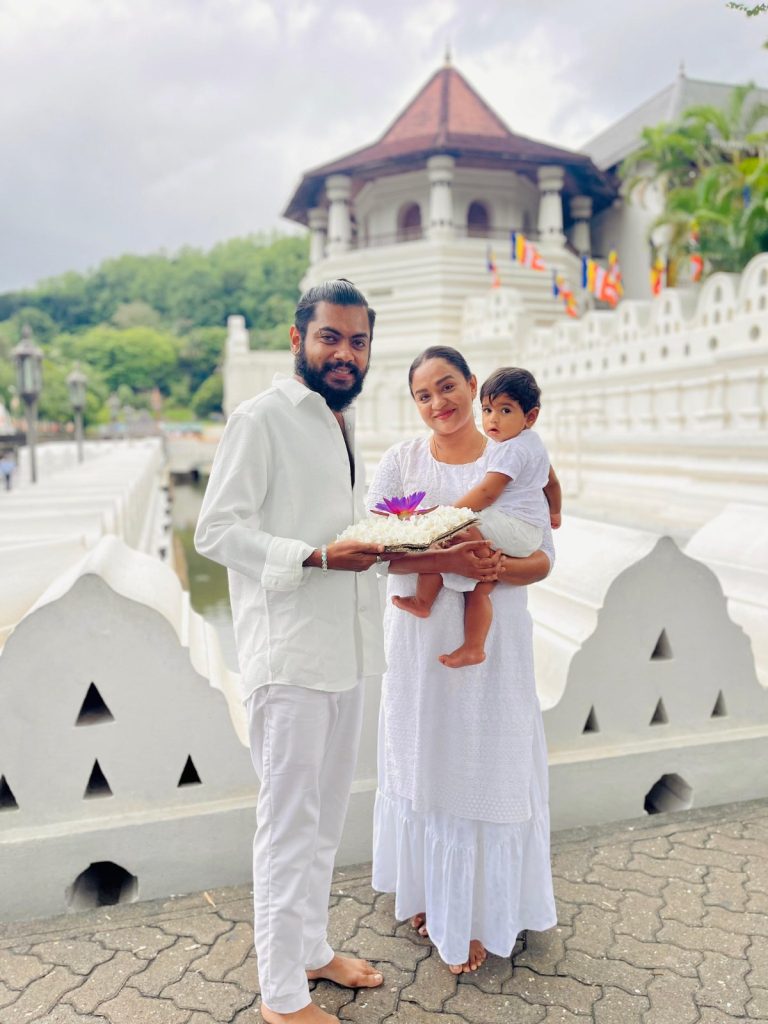 “කෛලාෂ් පුතා ජීවිතේ මුල්ම වතාවට අද ‘දළදා වහන්සේ’ වැඳ පුදා ගත්තා. උතුම් ත්රිවිධ රත්නයේ බෙලෙන් – මහා ධර්මස්කන්දයේ අනුහසින් – පිවිතුරු කිරිකැටි හදවතේ පිනෙන් මයෙ රන් පුතුට නේකාශීර්වාද වේවා ! දළදා සමිඳු පිහිටයි පුතේ..”