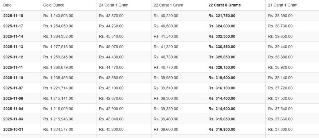 කැරට් 22 සහ 21 ග්රෑම් 1ක මිල පිළිවෙළින් රුපියල් 40,220.00ක් සහ රුපියල් 38,390.00ක් ලෙසයි සඳහන් වූයේ.