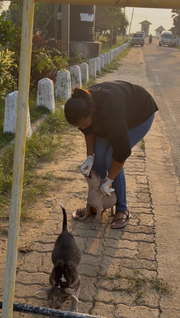 වඳින්න ගිය තලවිල පල්ලියේදී අද පියුමිගේ හිත උණු වෙලා තිබුණේ මේ අසරණ බලු පැටව් ටික දැකලා.
