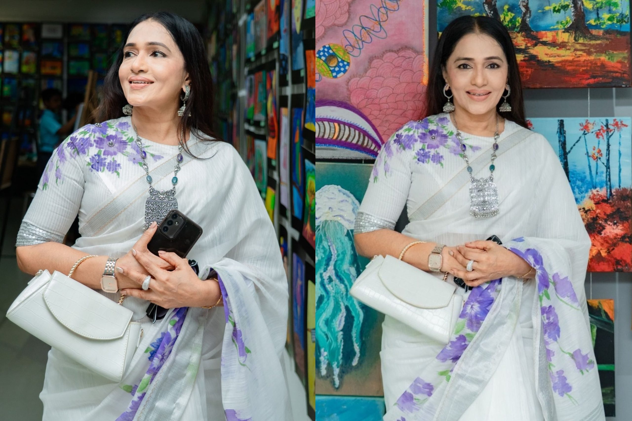 සුදු පාට මේ ලස්සන සාරියට එයාට අහිංසක චාම් අපුරු සුන්දරත්වයක් එකතු කරනවා…