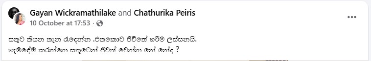 ඉතින් චතුරිකා මේ වගේ සටහනක් මුහුණු පොතට එක්කර තිබුණා…