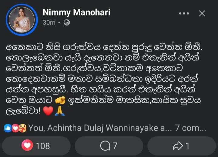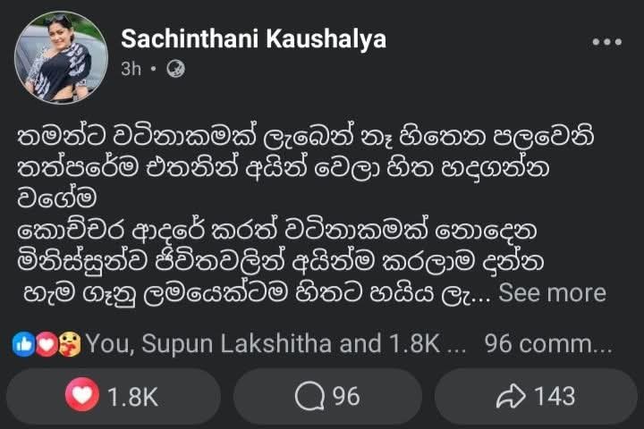 මනුස්සයෙක්ගෙ දුකක් වේදනාවක් මිම් එකක් විදිහට භාවිතා කරන ප්රසිධයින් අතරේ Sachinthani Kaushalya ටයි , Nimmy Manohari ටයි හදවතින්ම ගරු කරනවා ❤