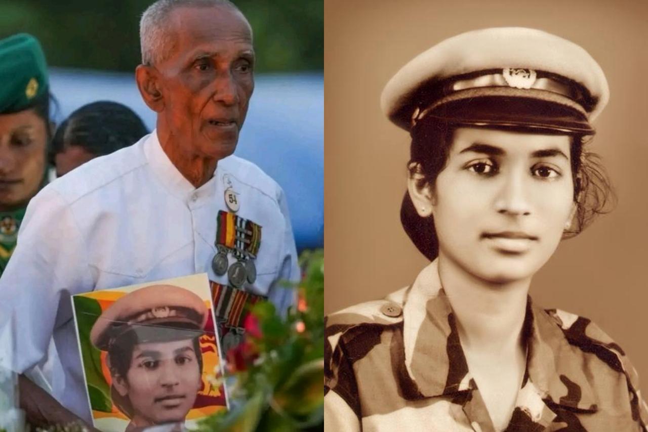 සමාජ මාධ්ය ජාලාවල සංසරණය වන ඡායාරූපයේ එක් පසෙක සිටින්නේ ඇයගේ ආදරණීය පියාය. තම දියණියගේ නිල ඇඳුමෙන් සැරසුණු රුව පපුවට තුරුළු කරගෙන සිටින ඒ මහලු පියාගේ දෑස්වල ඇති වේදනාව, ඕනෑම අයෙකුගේ නෙතට කඳුළක් ගෙන එයි. රටට වීරවරියක් වුවද, ඔහුට ඇය තවමත් තම පුංචි දියණියයි.