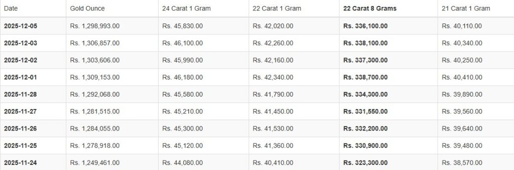 කැරට් 22 සහ 21 ග්රෑම් 1ක මිල පිළිවෙළින් රුපියල් 42,020.00ක් සහ රුපියල් 40,110.00ක් ලෙසයි සඳහන් වූයේ.