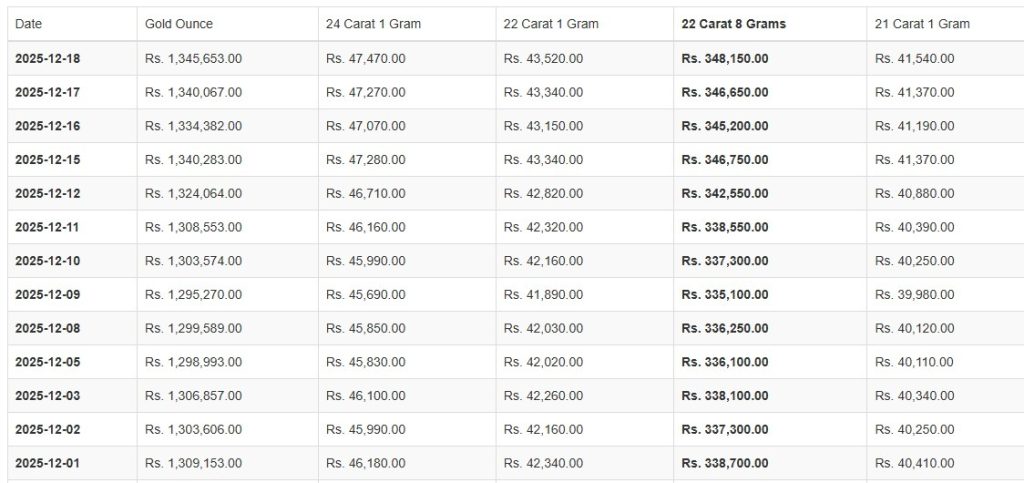 කැරට් 22 සහ 21 ග්රෑම් 1ක මිල පිළිවෙළින් රුපියල් 43,520.00ක් සහ රුපියල් 41,540.00ක් ලෙසයි සඳහන් වූයේ.