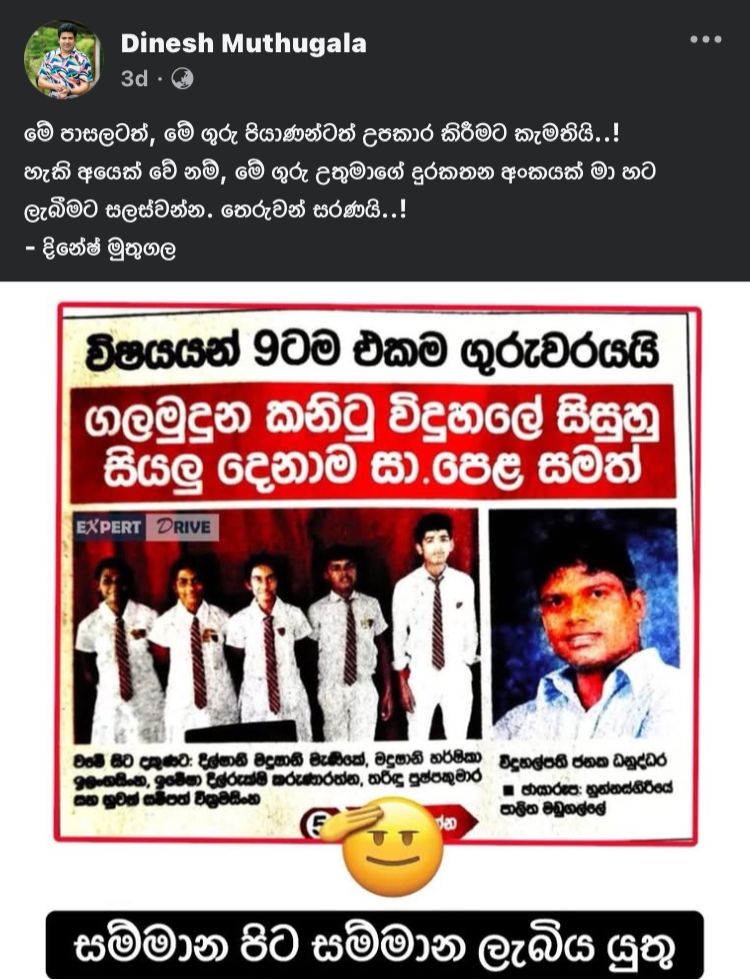 ඉතිං මේ අපූරු ගුරුතුමා වෙනුවෙන් සහ ඒ ලමුන් වෙනුවෙන් උදව් උපකාර කරන්න රටම දන්න දිනේෂ් මුතුගල සර් පෙරට ආවා.