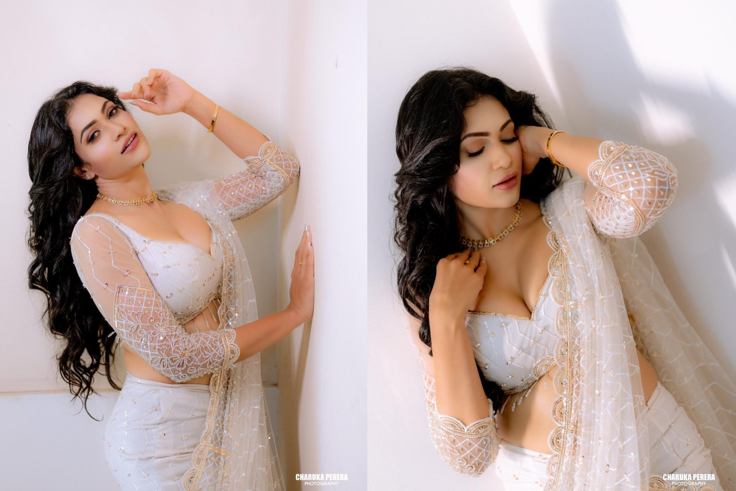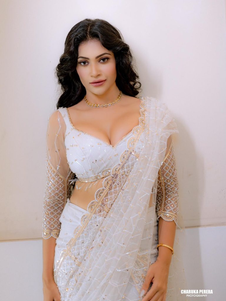ශ්වේත වර්ණ සාරියකින් හැඩවුනු ඇගේ ලස්සන මෙන්න බලන්නකෝ…