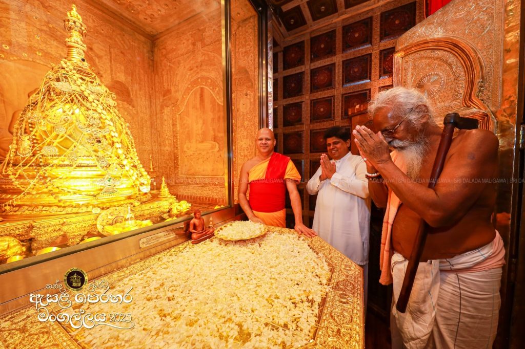 දියවඩන නිලමේ ප්‍රදීප් නිලංග දෑල මහතා විසින් ආදීවාසී නායක ඌරුවරිගේ වන්නිලැත්තන් ප්‍රමුඛ කණ්ඩායම පිළිගැනීමෙන් අනතුරුව මීපැණි පූජාව, දන්ත ධාතූන් වහන්සේ උදෙසා පූජා කිරීම සිදුකරන ලදී.