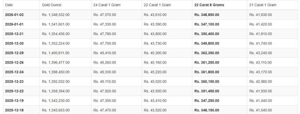 කැරට් 22 සහ 21 ග්‍රෑම් 1ක මිල පිළිවෙළින් රුපියල් 43,610.00ක් සහ රුපියල්ක් 41,630.00 ලෙසයි සඳහන් වූයේ.