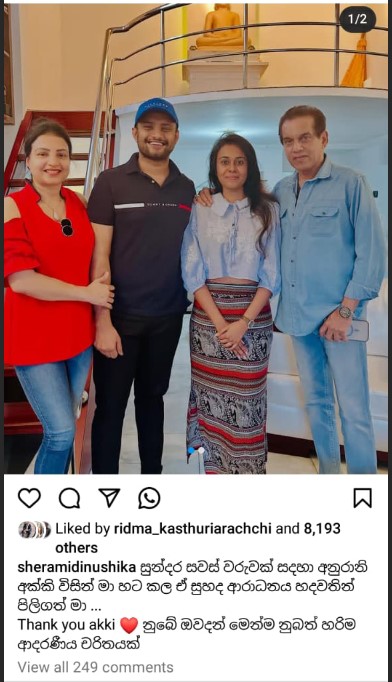 ඒ, ඇය ප්රවීණ රංගන ශිල්පි කමල් අද්දරආරච්චිගේ පවුලේ පිරිස් සමඟ එක්කළ ඡායාරූපක් සිය instagram ගිණුමට එක්කිරීමත් එක්ක.