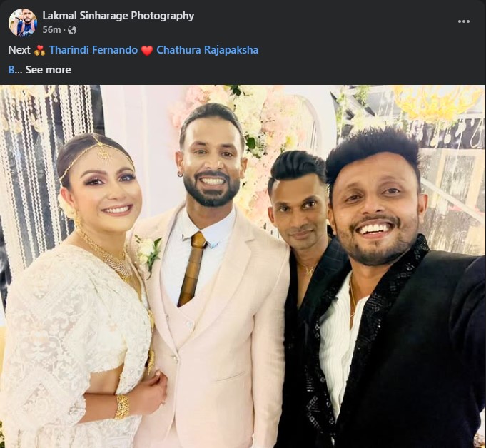 ඒ අතරේ මේ දෙන්නා මනාල යුවළක් ලෙසින් සැරසුණු සේයාරුවක්, ජනප්‍රිය ඡායාරූප ශිල්පි ලක්මාල් සිංහාරගේ සිය ෆේස්බුක් ගිණුමට එක්කර තිබෙනවා.