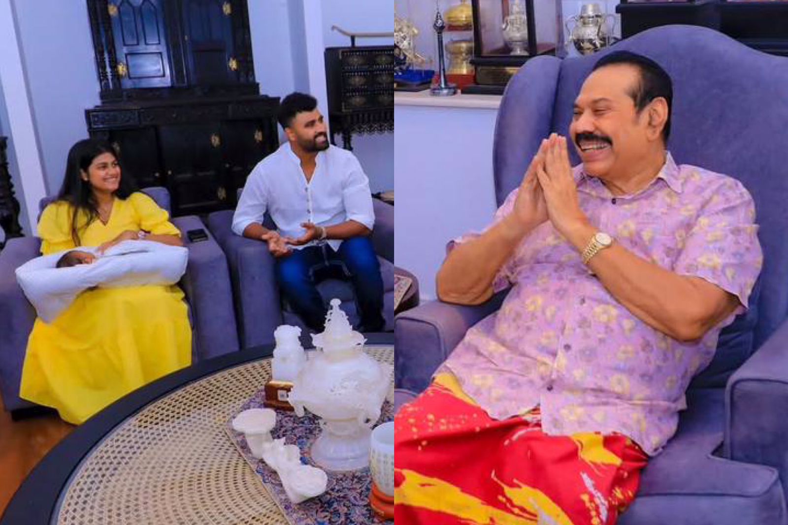 “ක්‍රිකට් ක්‍රීඩක තිසර පෙරේරා සහ ඔහුගේ බිරිඳ නිෂී හතරසිංහ දෙපළ පසුගිය දින (26) විජේරාම නිල නිවසට පැමිණ මා ද බිරිඳ ශිරන්ති ද සමඟ සුහද පිළිසඳරක යෙදුණි. බිලිඳු දියණියගේ පැමිණීම නිසා එම අවස්ථාව තවත් අලංකාර වූ බව කිව යුතුය. දියණියක් යනු පියෙකුට සම්පතකි. තිසාරා අවියානා පුන්චි දියණිය සමඟ මම ද බිරිඳ ශිරන්ති ද සෙනෙහසින් කෙටි කාලයක් ගත කළෙමු.