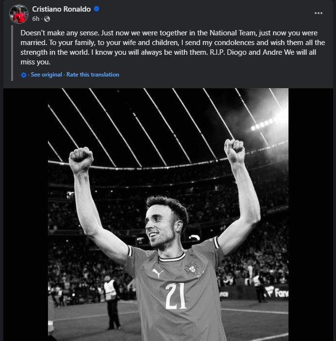 මේ අතර ලිවර්පූල් පාපන්දු ක්රීඩක ඩියෝගෝ ජෝටා වෙනුවෙන් ක්රිස්ටියානෝ රොනාල්ඩෝ සංවේදී සටහනක් තබා තිබුණා.