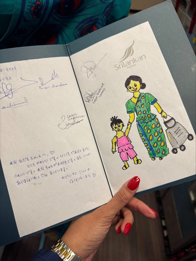 මේ ඇය ශ්රී ලංකන් ගුවන් සේවය හරහා පියාසර කළ මුල්ම වතාවලු.. ඔන්න ඉතින් ඒ ගමනේදී මේ දියණිය ඇයට හෘදයාංගම වූ අපේ ගුවන් සේවිකාවක් මෙන්න මේ විදිහට ඇයට අපූරු සිහිවටනයක් ලබාදෙනවා..