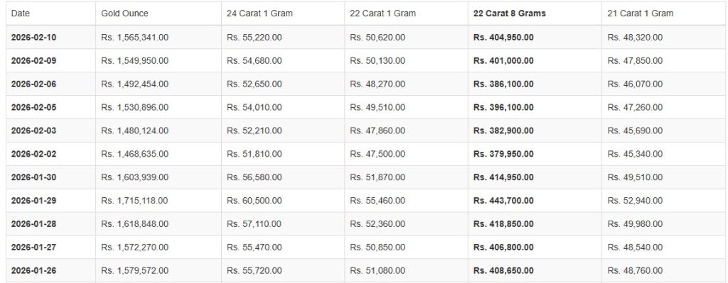 කැරට් 22 සහ 21 ග්රෑම් 1ක මිල පිළිවෙළින් රුපියල් 50,620.00ක් සහ රුපියල් 48,320.00ක් ලෙසයි සඳහන් වූයේ.