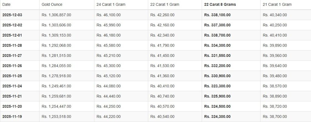 කැරට් 22 සහ 21 ග්රෑම් 1ක මිල පිළිවෙළින් රුපියල් 42,260.00ක් සහ රුපියල් 40,340.00ක් ලෙසයි සඳහන් වූයේ.