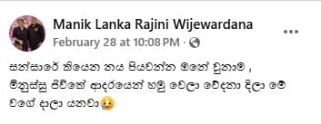 මේ වන විට වෙනව ජිවිතයක් ගත කරන ඇය සිය මුහුණු පොතෙන් නිරන්තරයෙන් සිය දුක ප්රකාශ කරනවා.