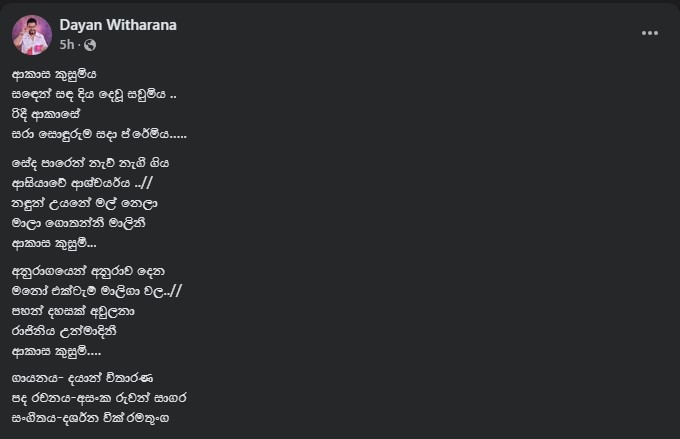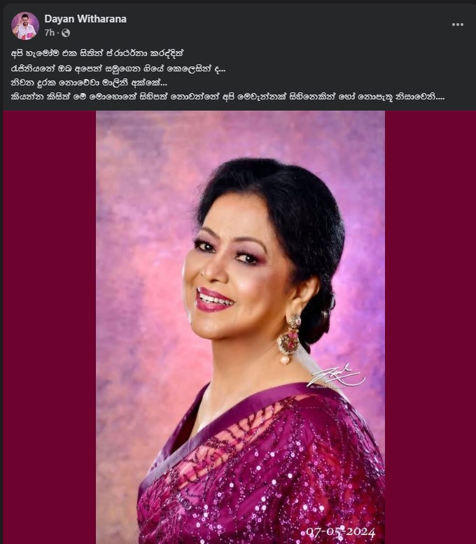 ඇගේ වියෝවත් සමග සමාජ මාධ්යයේ සංවේදී සටහන් රැසක් හුවමාරු වෙන අතර ගායන ශිල්පී දයාන් විතාරණ ද ඇය පිළිබදව සංවේදී සටහන් කිහිපයක් සමග ඡායාරූපය සිය ෆේස්බුක් ගිණුමට මෙලෙස එක් කර තිබෙනවා.